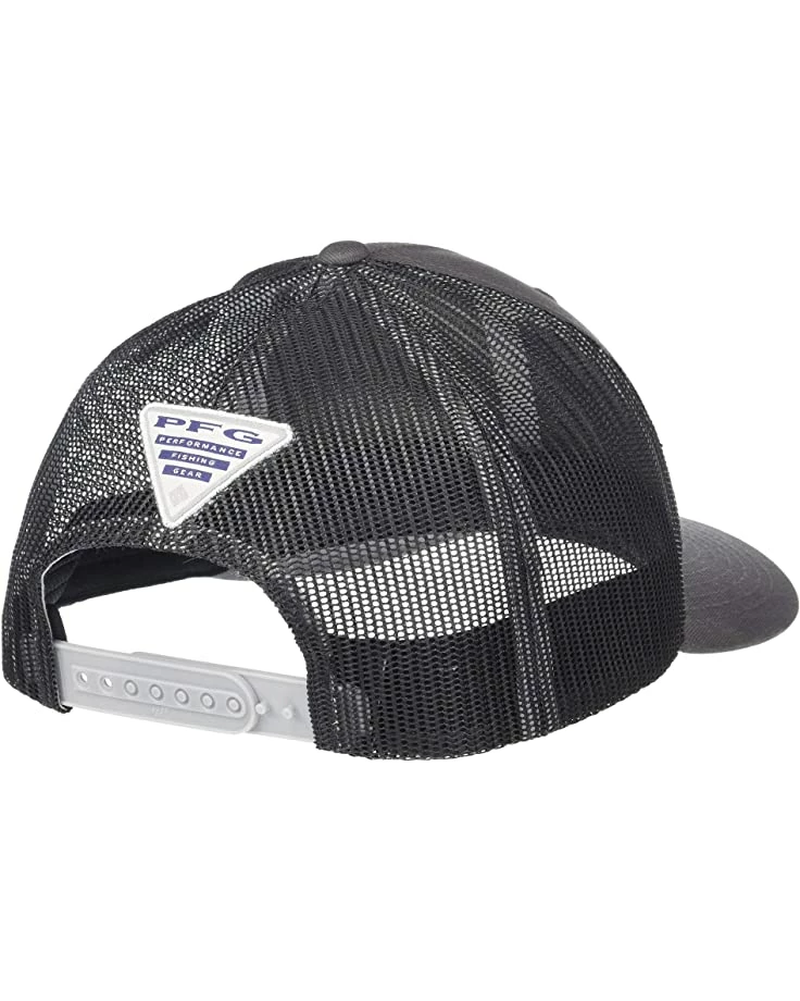 - The Columbia® PFG Mesh™ Snapback Hooks Ball Cap features a breathable mesh back and embroidery on the front panel.
